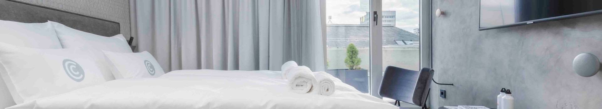 Svetle in zračne hotelske sobe so opremljene minimalistično in sodobno, vsebujejo pa nedostopno kopalnico. V skladu z vedno večjim pomenom spoštljivega odnosa do narave v hotelu ni plastičnih steklenic in papirnega poslovanja. V želji, da bi bili čim bolj prijazni do narave, hkrati pa gostom zagotovili nepozabno doživetje, v hotelu vsak gost prejme eko lonček za kavo in bidon za vodo, ki si ju lahko v 7. nadstropju hotela brezplačno napolni s kavo in vodo.