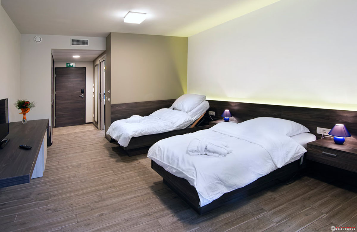 | Prilagodljivo ležišče | Nekatere sobe so opremljene z nastavljivimi posteljami, nekatere pa tudi s stropnim dvigalom, ki omogočajo še lažje prestavljanje gosta. |