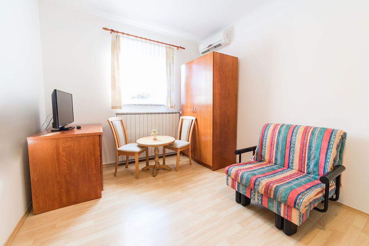 | Dostopno parkirišče | Na spodnjem delu parkirišča se nahaja rezervirano invalidsko parkirišče. Dostop do apartmaja za invalide je možen tudi z avtomobilom, saj lahko tik pred vhodom v apartma tudi parkirate. |