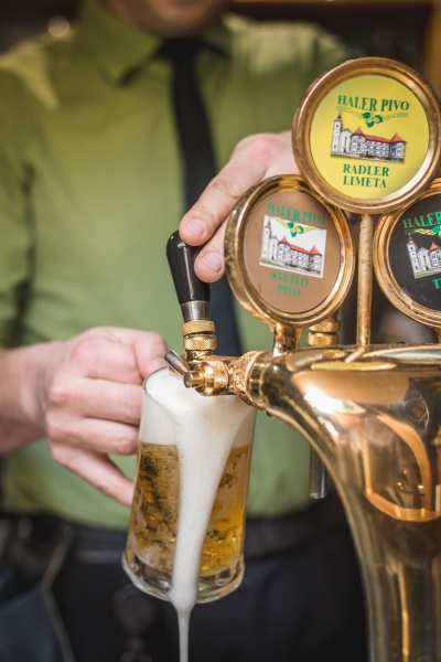 Na domačiji nudijo domače pivo, ki ga varijo v svoji mini pivovarni. Za različne vrste piva so bili nagrajeni že z več priznanji. V pivovarni varijo svetlo in temno pivo. Naravno kvašeno pivo Haler je zvarjeno po nemškem – starograjskem receptu. Pivo je naravno brez dodanih konzervansov. Pivo ponujajo kot točeno pivo v pivnici, lahko pa ga vzamete tudi s seboj v steklenicah različnih prostornin. Uporabljajo hmelj, pridelan v Savinjski dolini, in sicer aurora in golding. Po dogovoru je možen tudi ogled pivovarne z degustacijo.