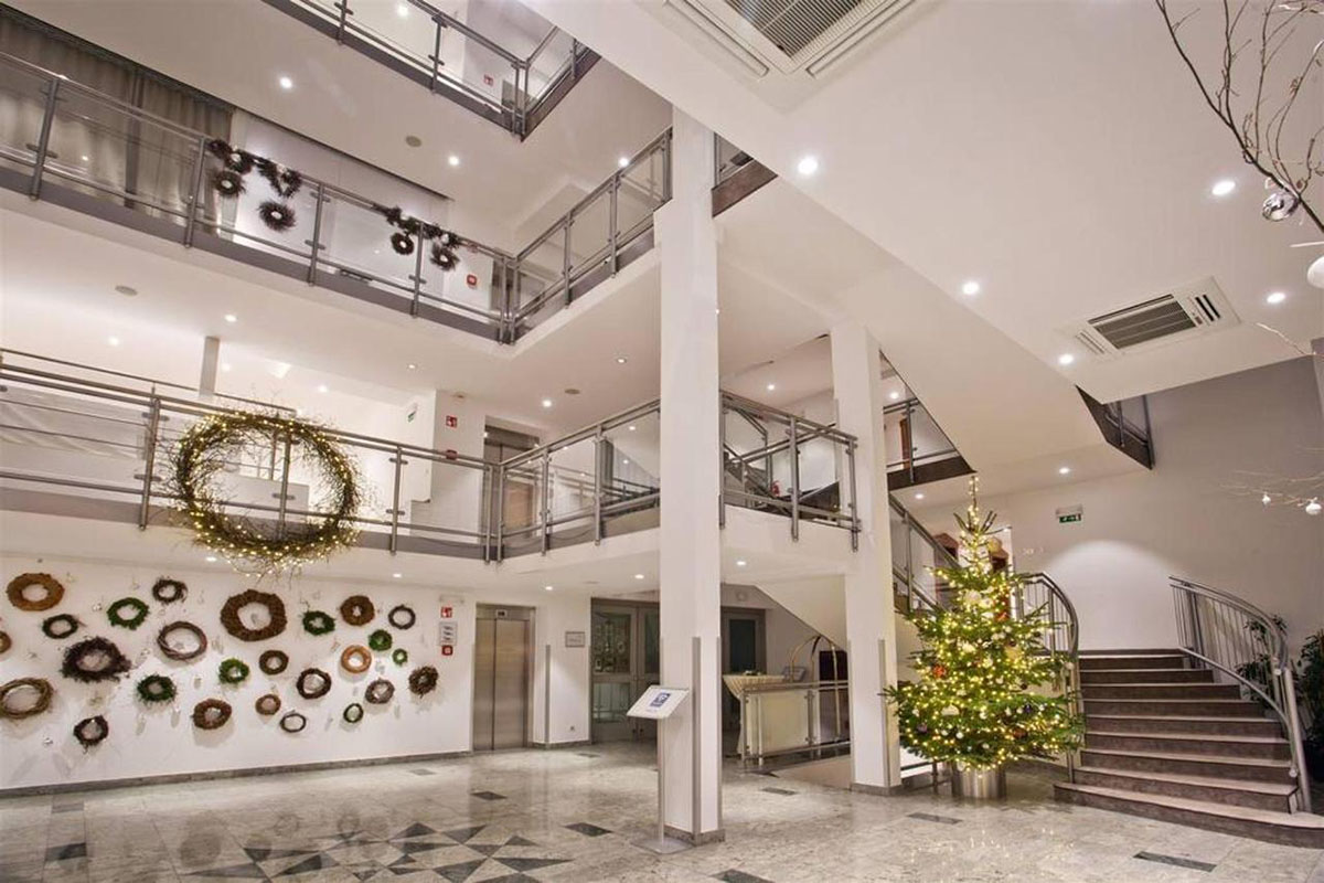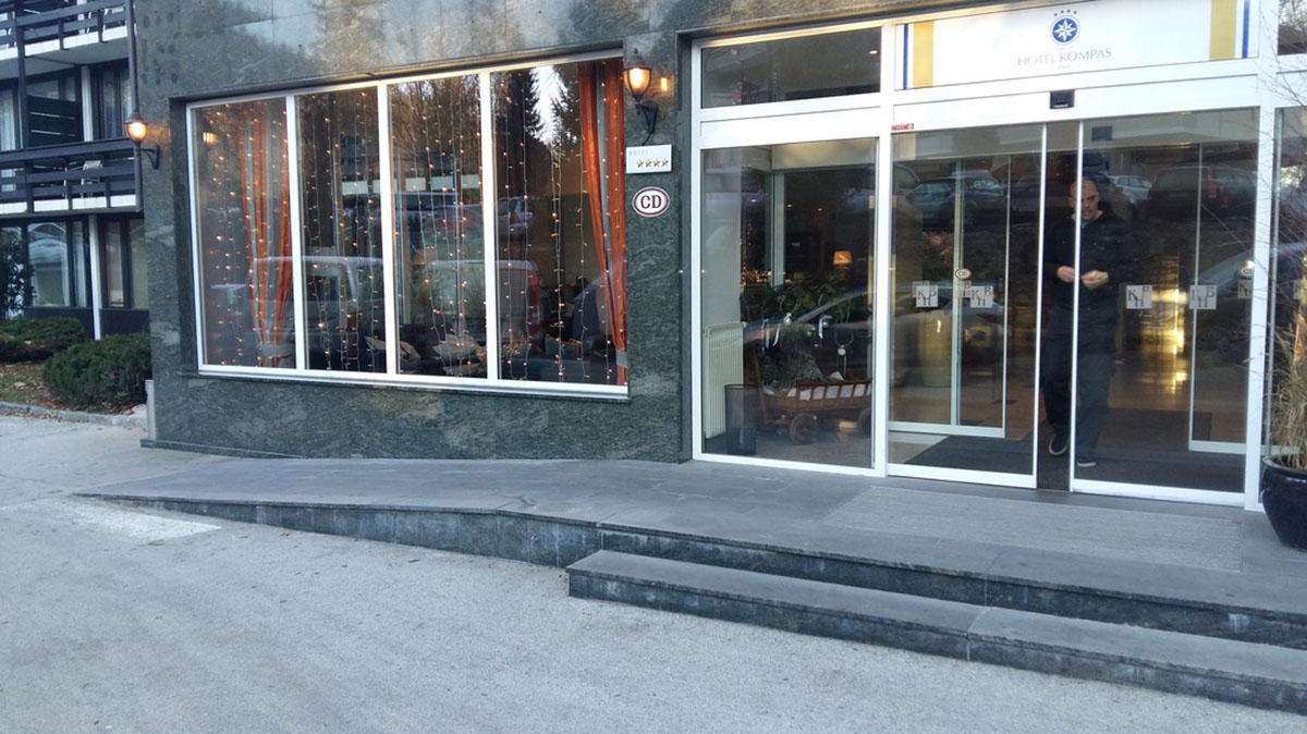 | Dostopna kavarna ali restavracija | Dostop do hotelskega bara in zunanje terase je v pritličju in povsem dostopen. Jedilnica je v nizkem pritličju in dostopna z dvigalom. Na poti med dvigalom in jedilnico je sicer nekaj strmih stopnic, vendar vas osebje pelje preko prehoda za zaposlene, ki pa je dostopen. Zajtrk ali večerjo pa vam lahko po predhodnem dogovoru postrežejo tudi v baru. |