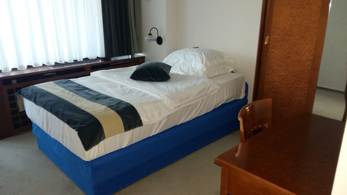 | Dostopna soba | Hotel ima 1 sobo prilagojeno za invalide. Soba se nahaja v pritličju, takoj za recepcijo, ima pa zakonsko posteljo in je povezana z dodatno dvoposteljno sobo. Iz sobe je prekrasen pogled na Blejski grad. |