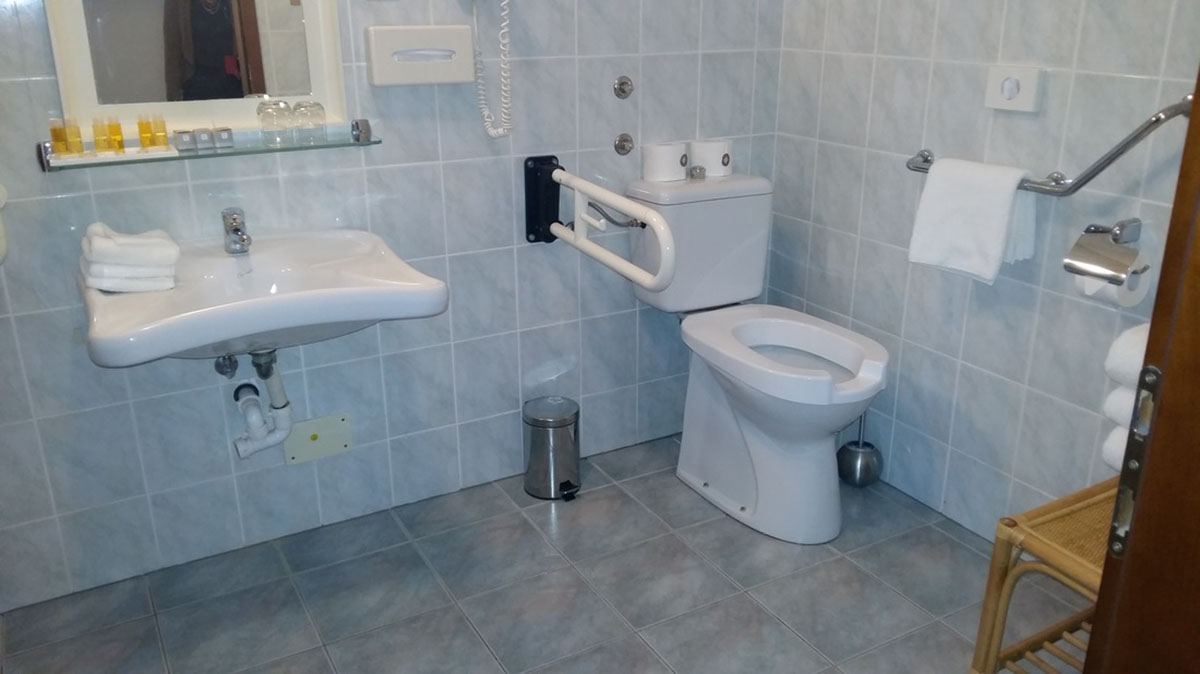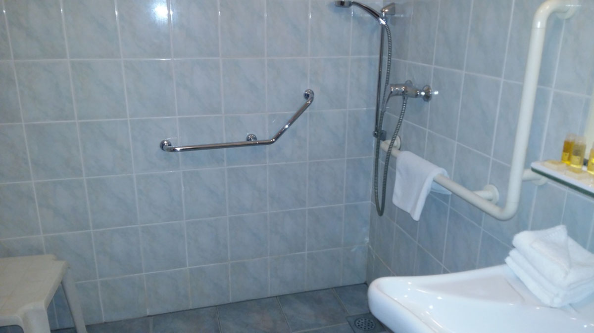 | Prilagojena kopalnica | Soba ima povsem prilagojeno kopalnico. Ta je opremljena z oprijemali, tušem brez roba in stolom pod njim. |