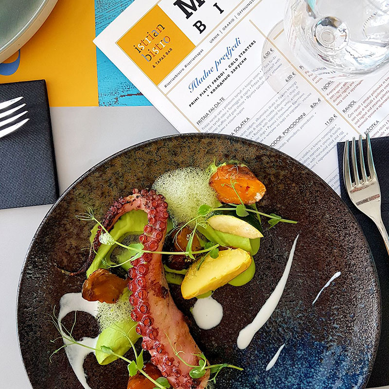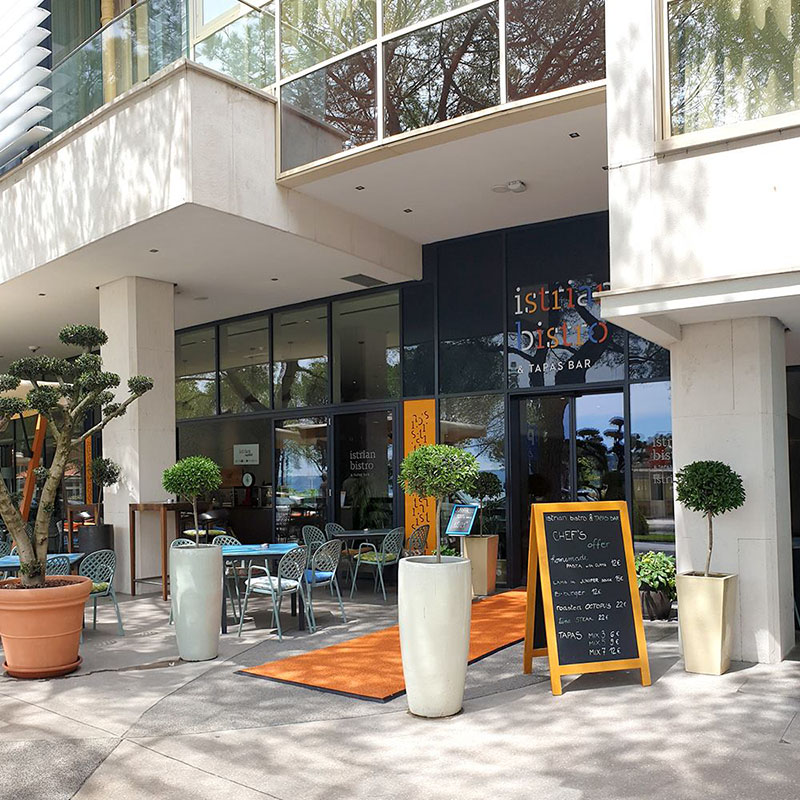 Istrian bistro & Tapas bar je odlična ideja za prigrizek ob popoldanskem koktajlu, lahko pa je tudi pika na i romantičnemu večeru. V središču ponudbe so lokalne jedi pripravljene na moderen način iz lokalnih in sezonskih sestavin. V njihovi kuhinji nastajajo hitri prigrizki (istrski tapasi), večerje in degustacijski menuji. Sveže pripravljene jedi iz lokalnih sestavin pa so v Istrian bistro & Tapas baru na voljo tudi v času kosil. Vodja kuhinje Borut Jakič vodi kuhinje vseh restavracij hotelov LifeClass Portorož in jim postavlja visoke standarde kakovosti. Ponaša se namreč z izkušnjami iz italijanske restavracije z Michelinovimi zvezdicami. Gostom želi pričarati vrhunsko kulinarično doživetje. Ponuditi pristne okuse, ki so pripravljeni zdravo, enostavno in kakovostno. V njegovih okusih se zato skrivajo čari destinacije: svež zrak, čistost morja in toplota sonca. Restavracija na žalost nima invalidom prilagojenih sanitarij.