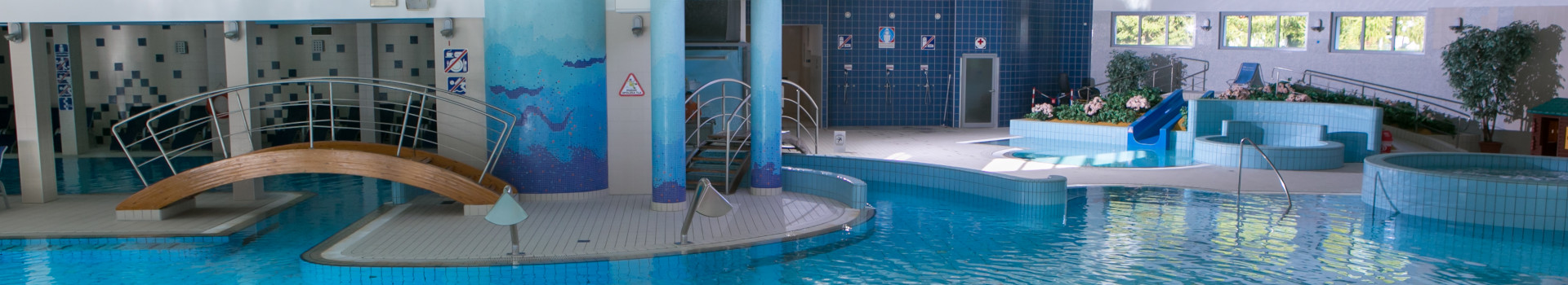 Bazenski kompleks ima več kot 400 m² vodnih površin. Zaplavate lahko v notranjem bazenu z vodo, ogreto na 30 stopinj Celzija, ali si privoščite masažni bazen, ki vas s 36 stopinjami Celzija zagotovo ogreje in sprosti z masažnimi vodnimi efekti. Z manjšim bazenčkom je poskrbljeno tudi za zabavo najmlajših, ki se bodo razveselili tudi tobogana. Zelo priljubljeni in obiskani so animacijski programi. Pod budnim očesom reševalcev iz vode pa bo obisk bazena miren in brezskrben.