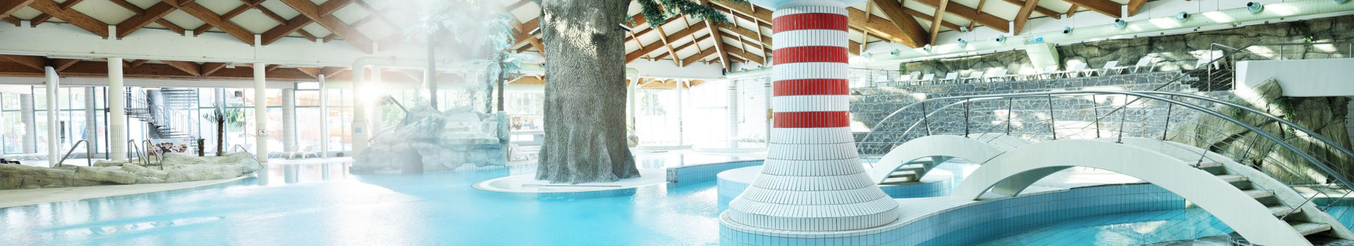 Prijetno kopanje v hotelskem bazenskem kompleksu in razvajanje v vrhunskem Spa & Wellness centru so le del ugodja, ki ga svojim gostom ponuja hotel. Povezovalni hodnik s Hotelom Toplice omogoča neposreden vstop v zimsko Termalno riviero in v Športni center. Bazenski kompleks pod tremi kupolami med drugim vsebuje terapevtski bazen, notranji bazen z whirlpoolom in masažnimi ležišči ter zunanji bazen nepravilnih oblik. Gre za največji pokriti kompleks bazenov, ki vsebujejo termalno vodo, saj znaša več kot 2.300 m² notranjih površin in vsebuje številne vodne atrakcije, med drugim gusarsko ladjo. Skozi prehod pa lahko zaplavate tudi v zunanji bazen oziroma v poletno Termalno riviero.