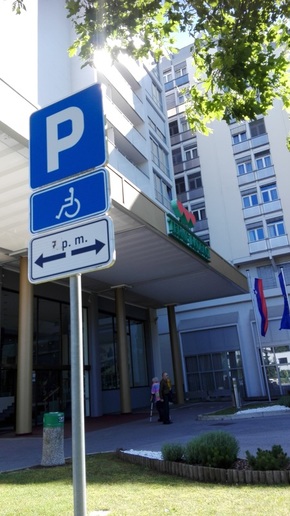 | Dostopno parkirišče | Rezervirana invalidska parkirišča se nahajajo pri vhodu na desni strani. |